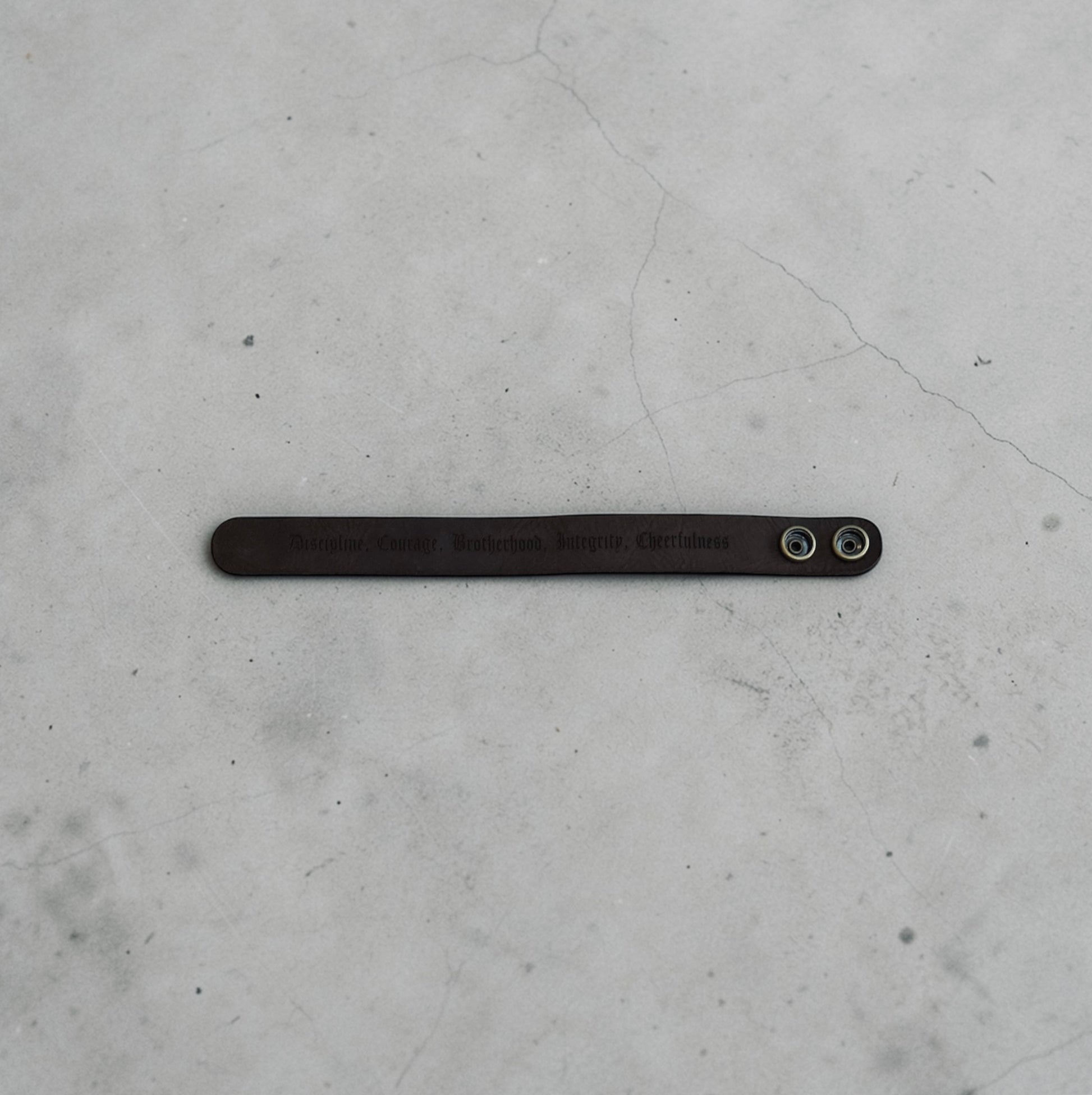Etched on the inside: Discipline. Integrity. Courage. Brotherhood. Integrity.